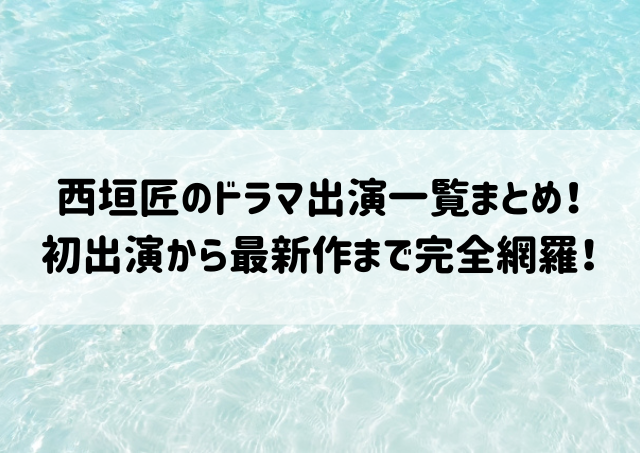 この記事では、西垣匠さんの出演ドラマ一覧を初登場から最新作までまるっとまとめてご紹介!