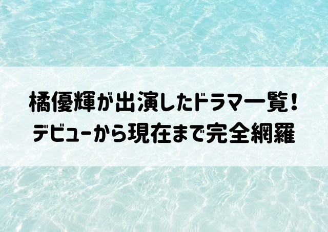 この記事では、橘優輝さんの出演ドラマ一覧をはじめ、話題になった役柄や演技力の魅力、映画出演情報、プロフィールまでまるっと網羅!