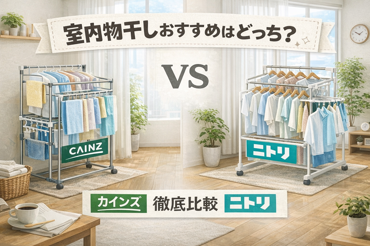 カインズとニトリの室内物干しは、どちらもコスパが良く優秀な商品ですが、特徴ははっきり分かれています。